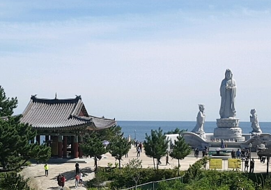 낙산사와 휴휴암과 가까운 위치에 있는 큰 절로, 아름다운 해안 전망을 자랑합니다.